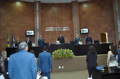 Sessão solene em homenagem aos 20 anos de emancipação e da 1ª turma de inclusão do Corpo de Bombeiros de Mato Grosso foi realizada na noite da última sexta-feira (12). Durante a solenidade, 29 oficiais foram homenageados com Moção de Aplauso em reconhecimento ao trabalho prestado em salvar vidas. Na oportunidade, o Corpo de Bombeiros presenteou os oficiais com "um mascote" em representação da turma - um jacaré. A peça feita em acrílico foi entregue aos oficiais para guardarem de recordação.