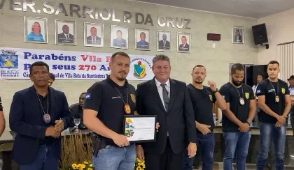 O deputado estadual Valmir Moretto (Republicanos) homenageou, na última sexta-feira (18), policiais civis de Vila Bela da Santíssima Trindade com entrega de moções de aplausos. O evento aconteceu em sessão da câmara municipal, que marcava as festividades dos 270 anos do município – primeira capital de Mato Grosso.