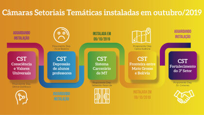 O calendário de atividades da Assembleia Legislativa de Mato Grosso no mês de outubro tem, entre os destaques, a instalação de cinco Câmaras Setoriais Temáticas (CSTs). Duas delas já foram instaladas e outras três terão os trabalhos iniciados até o fim do mês.