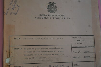 Um ano após o início da implementação do projeto, a área foi elevada a distrito de Aripuanã. Em 18 de setembro de 1979, menos de três anos após o início das obras, foi elevado à categoria de município, por força da Lei nº 4.157 – propositura apresentada pelo então deputado Osvaldo Sobrinho, aprovada pela Assembleia Legislativa de Mato Grosso (ALMT) e publicada aos 18 de dezembro daquele ano. O documento original, assim como significativo acervo de valiosos registros sobre a história do estado no período republicano, especialmente a produção legislativa, encontra-se sob a guarda do Instituto Memória do Poder Legislativo (IMPL), aberto a consultas e pesquisas a estudiosos, professores e estudantes particularmente, de resto a toda a sociedade mato-grossense.