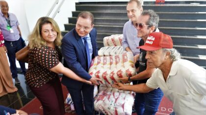Foram contempladas, na manhã desta quarta, a Associação de Amigos da Criança com Câncer (AACC/MT), a Associação Voltada para a Generosidade, Amor e Solidariedade (Avogas) e as Obras Sociais Anália Franco, cada qual recebendo 670kg de alimentos.