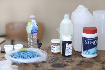 Duas oficinas de produção de sabão líquido foram oferecidas pela Assembleia Social [antiga Sala da Mulher] nesta semana, em comunidades periféricas distintas. A capacitação na terça-feira (5) foi destinada aos frequentadores da Casa de Candomblé Inzo Mukumbe Arô, no bairro Jardim Ubatã e, ontem (6), aos moradores do bairro Serra Dourada.