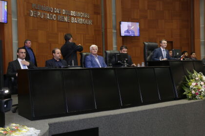 O secretário estadual de Saúde, Gilberto Figueiredo, recebeu moção de aplausos pelos relevantes trabalhos à saúde pública de Mato Grosso; também a secretária de Meio Ambiente, Maureen Lazaretti, o secretário de Segurança Pública, Alexandre Bustamante, e o tenente-coronel PM Juliano Chiroli, coordenador do Centro Integrado de Operações Aéreas (Ciopaer), pelo brilhante trabalho da referida secretaria no combate aos incêndios florestais no estado.