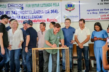 As autorizações foram assinadas pelo governador Mauro Mendes, pelo secretário-chefe da Casa Civil, Fábio Garcia (União Brasil), pelos deputados estaduais Eduardo Botelho, Dilmar Dal Bosco, Dr. João (MDB), Beto Dois a Um (PSB), Paulo Araújo (PP) e Chico Guarnieri (PRD), além dos prefeitos de Nortelândia, Mariano Gomes (União Brasil), e de Arenápolis, Éder Marquis. O ato reuniu lideranças políticas e comunitárias da região e marcou o início de uma nova etapa de investimentos estruturantes no médio-norte de Mato Grosso.
