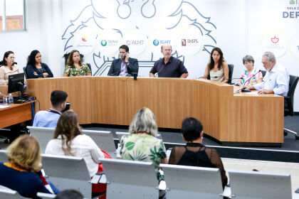 As representantes da Seduc explanaram brevemente os programas desenvolvidos pela pasta com objetivo de prestar assistência psicossocial a estudantes e professores da rede pública de ensino em Mato Grosso.