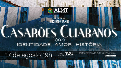 Nesta quinta-feira (17), às 19h, o Teatro do Cerrado Zulmira Canavarros receberá o lançamento do documentário “Casarões Cuiabanos – Identidade, Amor e História”, produzido pela TV Assembleia para a 5ª Semana do Patrimônio Histórico de Cuiabá. A Casa de Leis é apoiadora do evento, que será realizado de 15 a 18 de agosto pela Associação Cuiabana de Cultura – Muxirum Cuiabano, em parceria com a organização Amigos do Centro Histórico de Cuiabá.