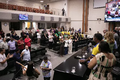 Sessão solene da Assembleia Legislativa de Mato Grosso, requerida pelo deputado Lúdio Cabral (PT) homenageou a Campanha da Fraternidade 2026, que tem como tema “Fraternidade e Moradia”. A sessão, realizada na noite de segunda-feira (16), reuniu representantes de pessoas em situação de rua, de famílias que lutam para ter a casa própria, pastorais sociais, pessoas da sociedade civil e religiosos que trabalham com causas sociais e acolhimento de pessoas vulneráveis.