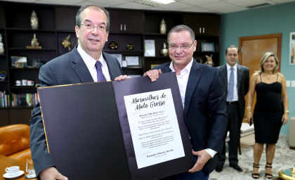 Ao receber os livros Pantanal, do autor Mike Bueno, e Maravilhas de Mato Grosso – Beleza Exuberante, da autora Lauristela Guimarães, o ministro ressaltou as belezas naturais de Mato Grosso. “Já tinha vindo aqui algumas vezes e agora fui agraciado com livros que registram as belezas naturais do estado”, disse.