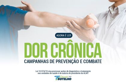 Pensando em amenizar a rotina de milhares de pessoas que convivem com dor crônica, o presidente da Assembleia Legislativa, deputado Eduardo Botelho (DEM), criou a Lei 10.974/19, que institui a Campanha Estadual de Prevenção e Combate à Dor Crônica em Mato Grosso.