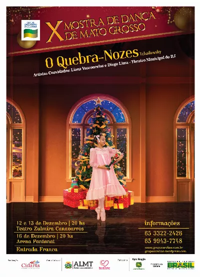 O clássico “O Quebra-Nozes”, baseado na obra original de Marius Petipa e com música de Tchaikovsky marca a celebração de fim de ano da Companhia de Dança Ballet de Mato Grosso / Cidarta. O espetáculo – um dos mais importantes do balé de repertório - é tradição na programação anual dos principais teatros nacionais e internacionais como parte das festividades natalinas.