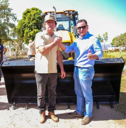 Como ação de fomento na área da agricultura familiar na Baixada Cuiabana, nesta terça-feira (26), a cidade de Rosário Oeste recebeu mais um maquinário agrícola. Uma retroescavadeira foi entregue pelo deputado Eduardo Botelho (União) ao prefeito da cidade, Mariano Balabam (PSB).